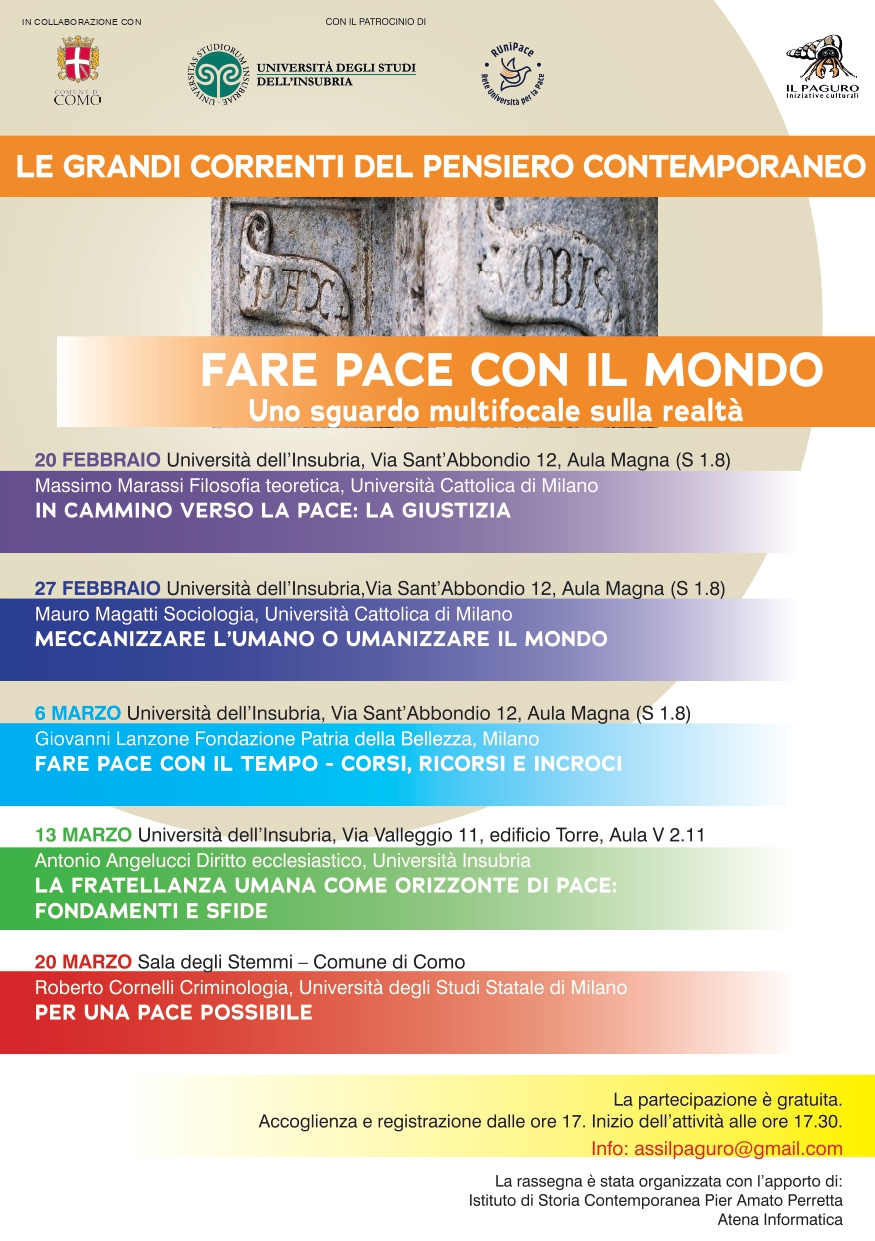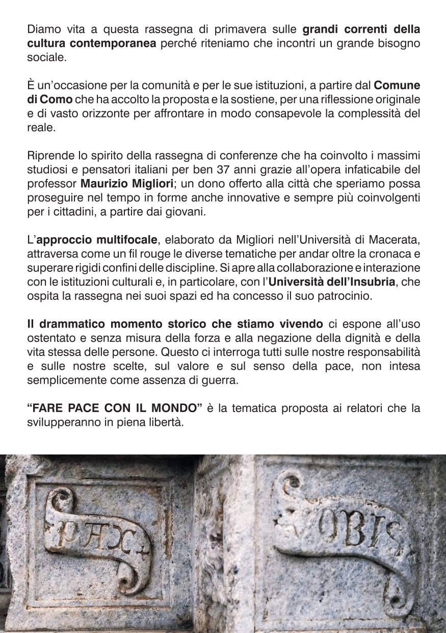 Si riparte con il Corso 2026 dal titolo “Fare pace con il mondo. Uno sguardo multifocale sulla realtà”